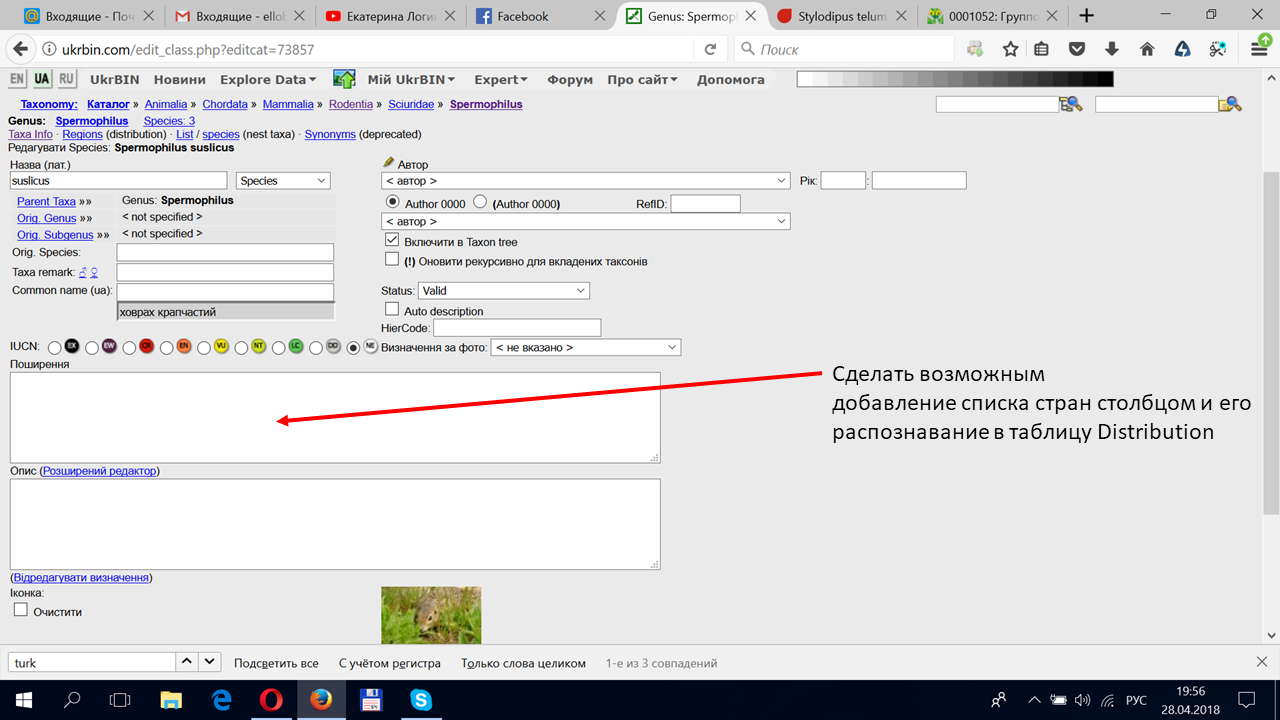 | Summary | 0001052: Групповое добавление стран (species distribution) | ||||