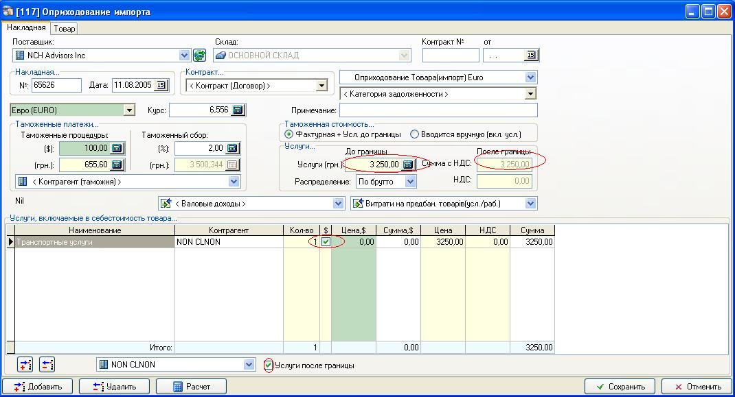 Самое неприятное, что услуги До границы при повторном расчете задаваиваются не только в сумме Оприходования Импорта, НО и в себестоимости товара ... |