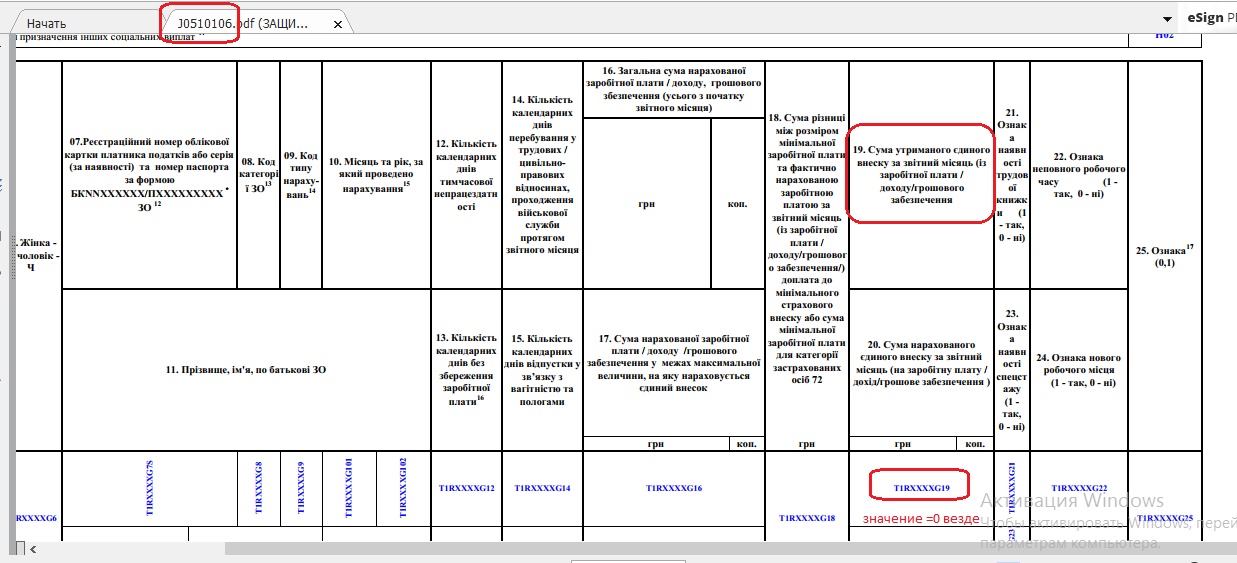 Посмотрел файл еще раз - тег T1RXXXXG14 - 14. Кількість календарних днів перебування у трудових / цивільно- правових відносинах, проходження військової служби протягом звітного місяця - это поле KD_PTV из старого экспорта в DBF (см. выше в каменте https://www.clevercomponents.com/tracker/view.php?id=1681#c4500 я скрин давал с расшифровкой полей) |
