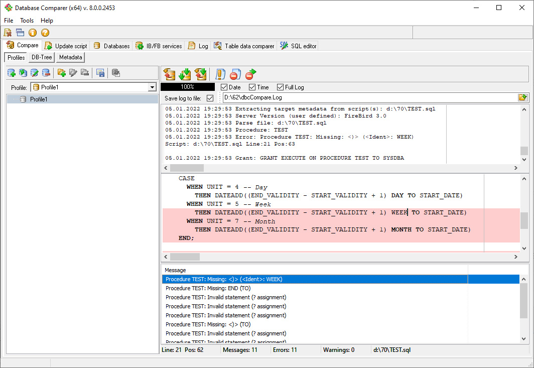 | Summary | 0001730: DB Comparer 8.0 fails when parsing the Firebird 3.0 script. | ||||