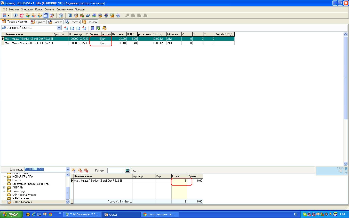 Меня полностью устраивает режим работы, когда позиции товара при сканировании сканером штрих-кодов "сбрасываются" в окно предварительной выписки с кол-вом = кол-ву сканирований по штрих-коду товара, но не устраивает - ситуация некорректной выписки кол-ва отсканированного товара , когда общее кол-во находиться в нескольких партиях. Ты сам думаю, понимаешь - человек принес 5(пять) пузырьков на кассу, отсканировали 5 , а товар был в партии 3+2 и тетя-кассир в чеке получает 3, и если тетя этого не проконтролировала - чел платит за 3 и уходит... а дальше думаю не надо объяснять, кто платит за остальное? |