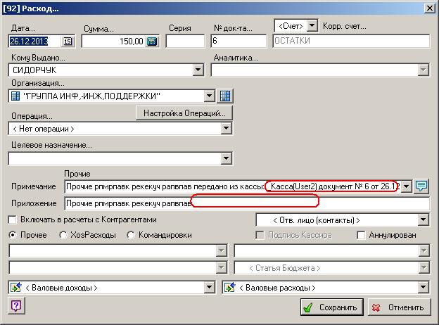| Description | Проблема- поле Примечание может быть исправлено в документе Основании(по которому создается автоматически созданный документ Расхода), и поле Примечание в созданном документе, тоже исправляется, а в этом примечании, при первоначальном создании, дается информация о Кассе и Пользователе, который создал Документ. Соответственно вся эта информация - теряется, а это важно. При автоматическом создании документа - Расходного ордера, дублировать поле Примечание, которое создается автоматически при создании документа в поле Приложение. Поле Приложение не корректировать при повторном сохранении документа Основания(т.е. чтоб там хранилось первоначальное Примечание). | ||||