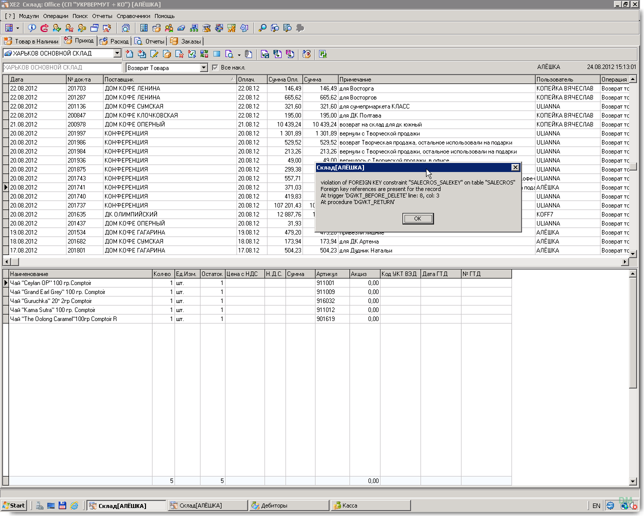 | Summary | 0000366: Ошибки в обновленном модуле СКЛАД от 15.08.2012 | ||||