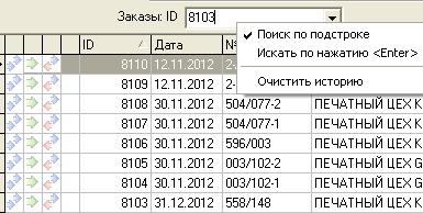 Фильтр(поиск) должен работать ТОЛЬКО по производственным Заказам, если в качестве поля для поиска будет одно из полей - Изделия в Заказе, то соответственно должны отбираться Заказы, где встречается значение этого поля. И поиск должен не зависеть от встроенного фильтра по дате, от значения Фильтра, который в данный момент наложен на список..., т.е. поиск должен осуществляться по ВСЕМУ списку Заказов. |