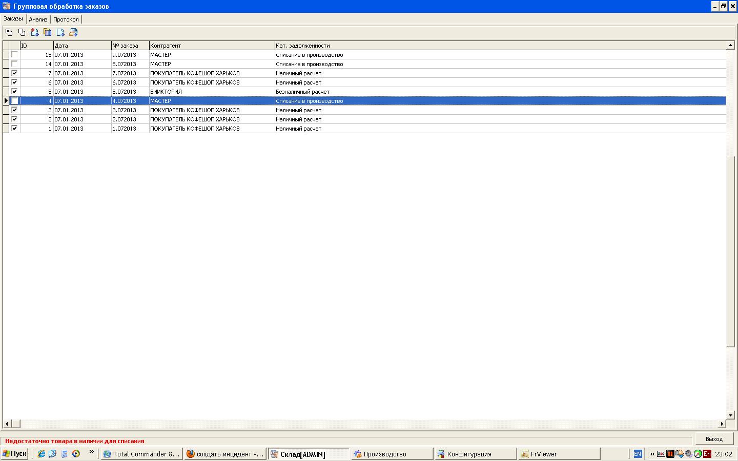 | Summary | 0000447: +Склад - Массовая обработка Заказов-Формировать накладную на реализацию - Окно анализа | ||||