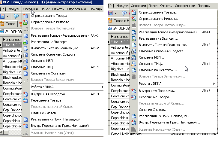 | Summary | 0000549: Склад - неактивные операции главного меню "Операции" | ||||