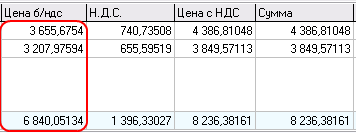>>Не понял что когда неправильно считается. Что у тебя за ситуация на картинке и какой там ндс на самом деле. 1-ая строка считаем на калькуляторе Цена с НДС - НДС = 4386,81-740,735=3 646,075, а в гриде 3655,675. Вот такая проблема... а итог и сумма проводок считается правильно :-( >>Там сумма же вроде гридом автоматом считается. Видимо, так НО почему считается процент указанный в форме, а не как Цена с НДС - НДС |