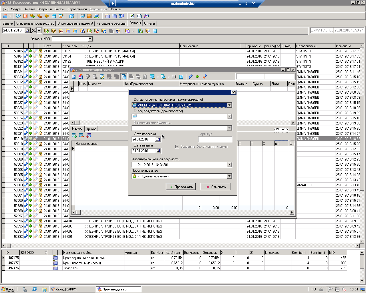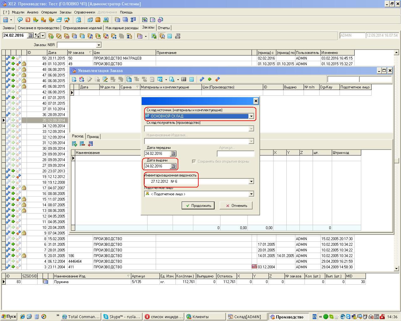 В базе которую я прислал в Производстве найди заказ № 35(см на картинке). И повтори наботр действий: 1. Нажми кномку Резервирование материалов и комплектующих 2. Нажми кнопку добавить накладную. 3. Измени склад-источник на Основной склад или Реализация ГП. При этом ничего больше не нажимая я получаю заполненную на картинке форму, где уже выбрана инвентарная опись И ДАТА инвентарной описи НЕ СООТВЕТСТВУЕТ дате документа и дате выдачи(просто автоматом выбирается первая по списку ведомость). А предпологалась, что ТОЛЬКО при наличии ведомости за число указанное в поле Дата выдачи, по выбранному складу, эта опись будет автоматом выбираться в поле Инвентарная опись. |