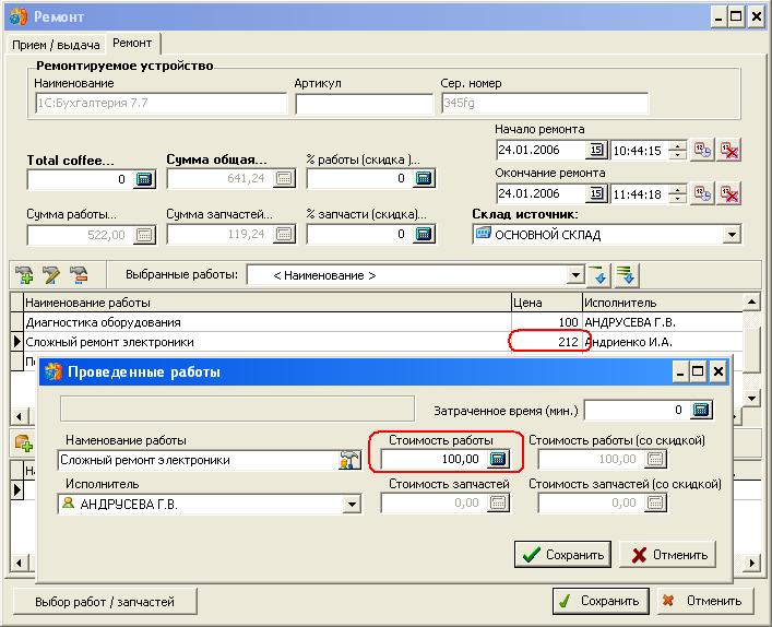 | Summary | 0000890: -СЦ - Карточка Ремонта - Редактирование услуги - в форму добавляет сумму из первой по списку услуги | ||||