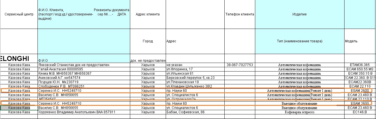 | Summary | 0001565: +СЦ- Выгрузка данных из модуля СЦ в файл формата *.xls для отчета Delonghi- доработка | ||||
