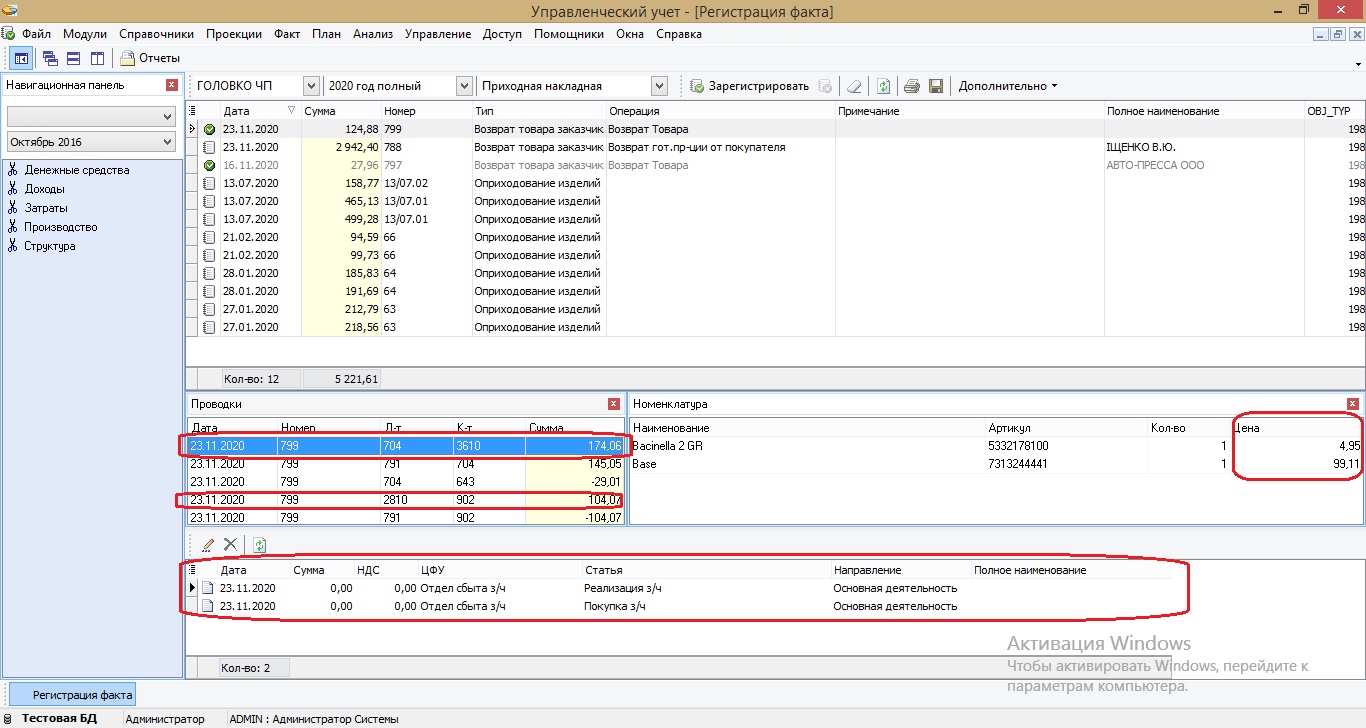 | Description | Для возврата, который сделан из импортного товара не правильно рассчитывает суммы операций при Регистрации факта по Приходной накладной - Возврат товара. Суммы =0, а цены на товар есть и проводки формируются норм. См. приложенные картинки. Базу послал на почту | ||||