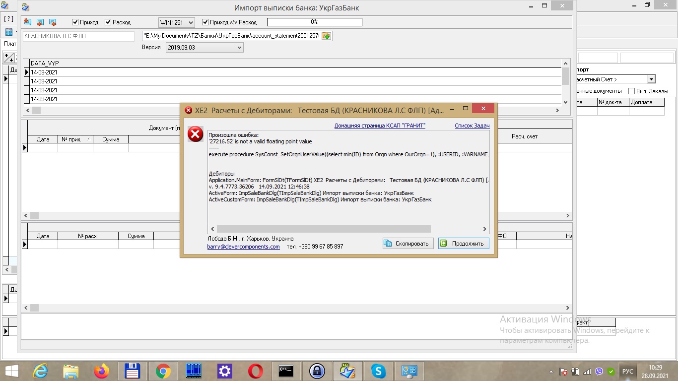Возникает ошибка при стандартных параметрах русской локали |