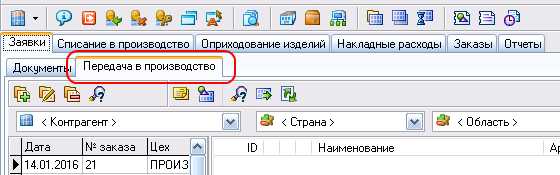 А где закладка "Передача в производство"?